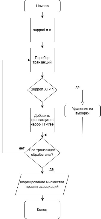 Рис. 3. Алгоритм фильтрации правил ассоциаций