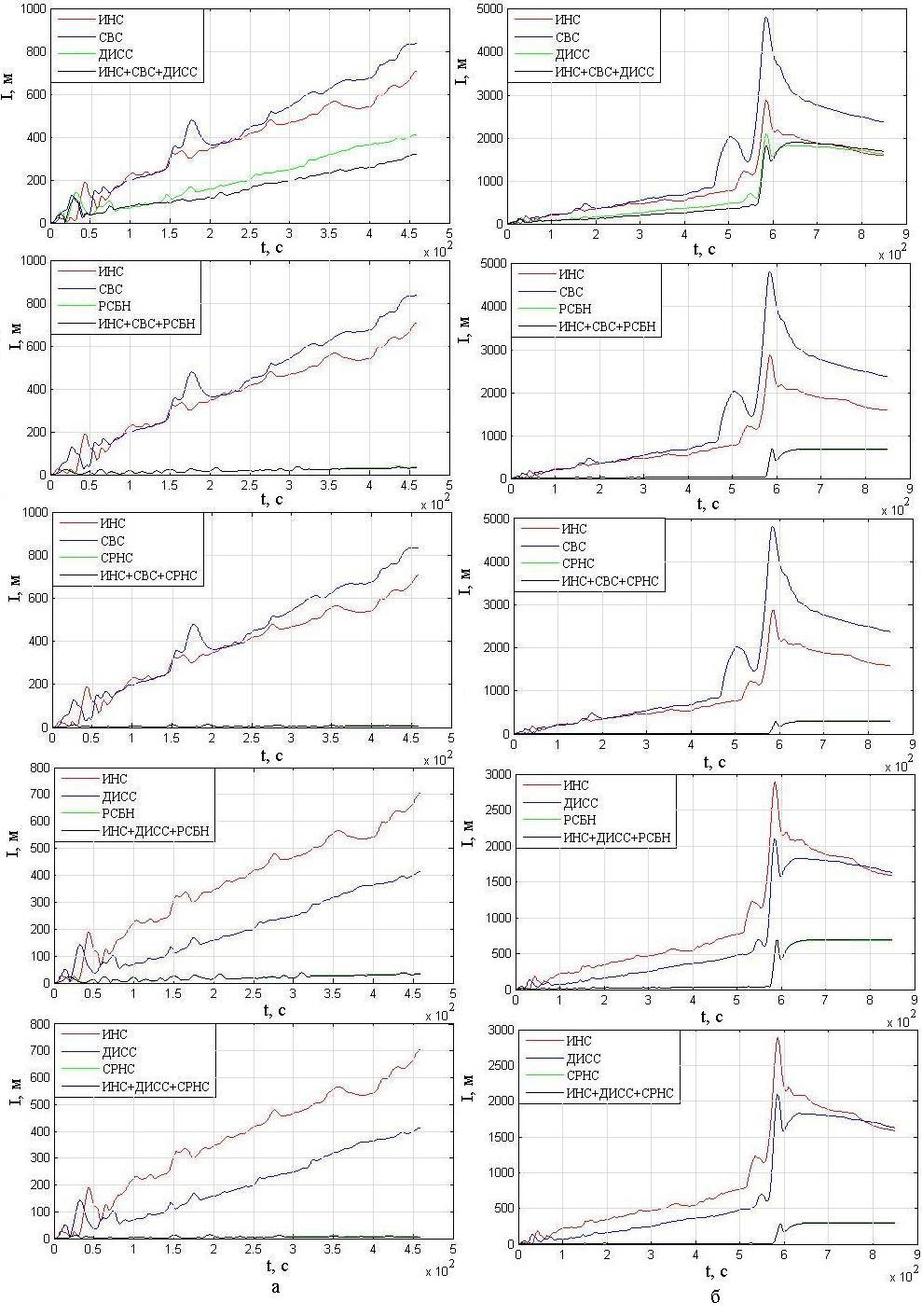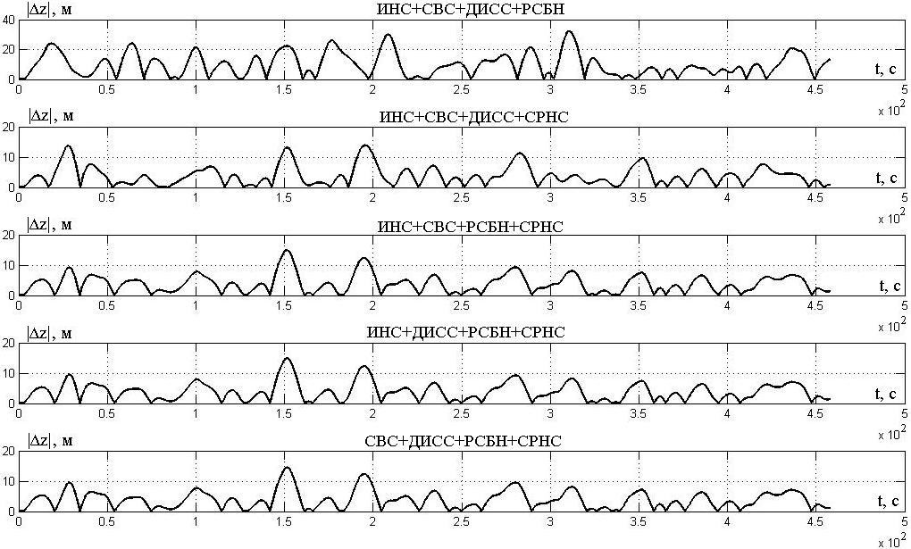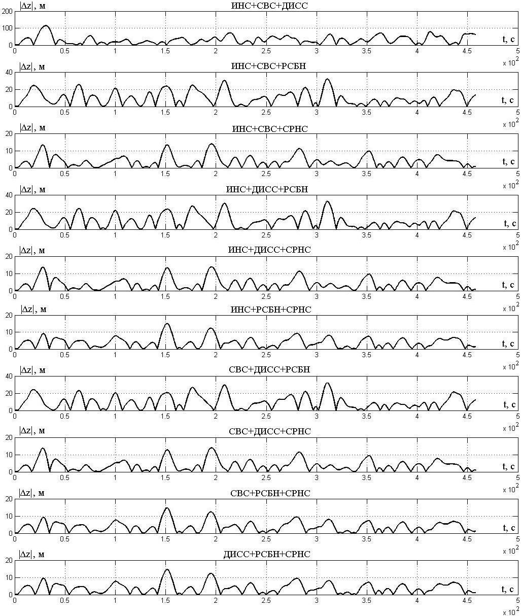 Рис. 7. Влияние комплексирования различных четырех систем на при полете: