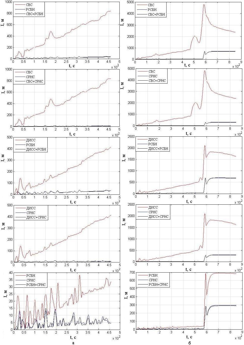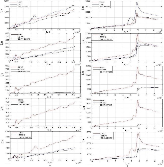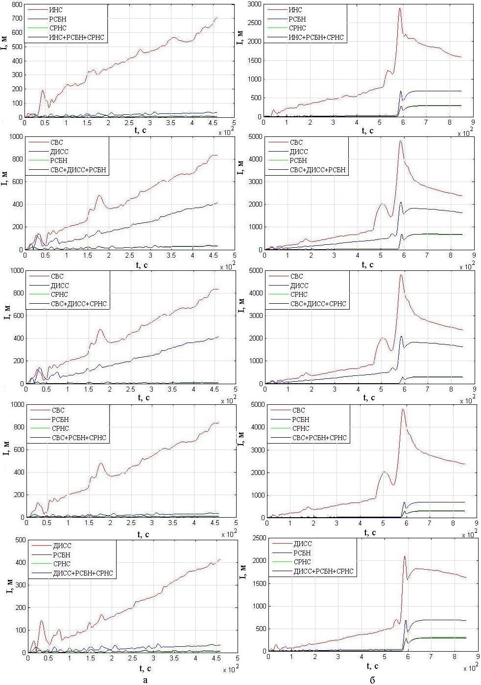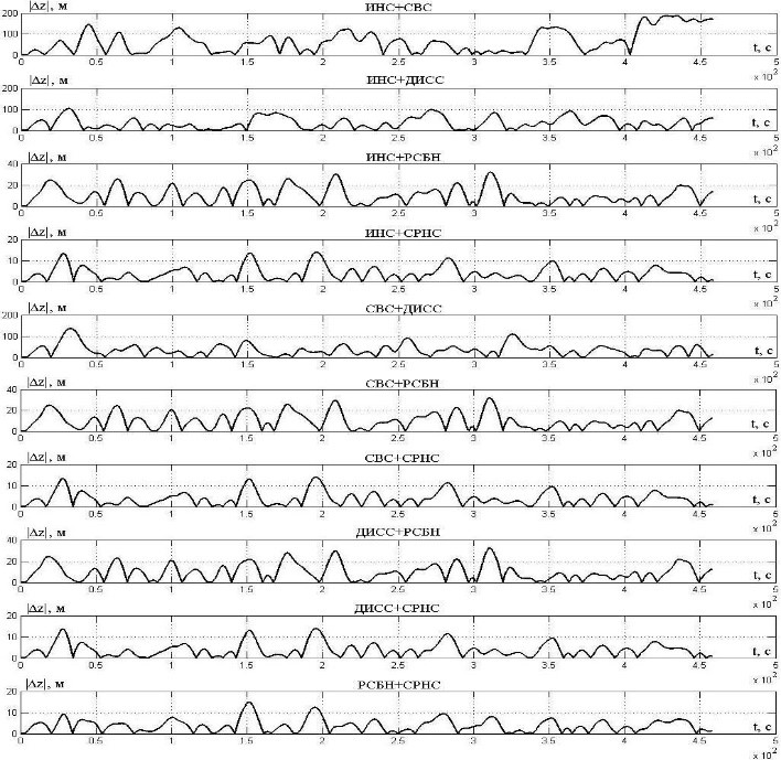 Рис. 7. Влияние комплексирования различных четырех систем на при полете: