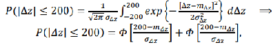Вероятность удержания ВС в пределах допустимого коридора (200 м)