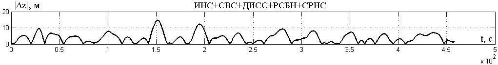 Рис. 4. Абсолютное отклонение от линии заданного пути при комплексировании навигационных