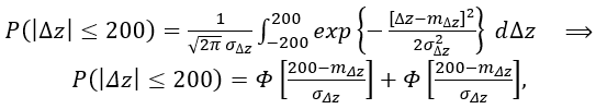 The probability of keeping the aircraft within the acceptable range (200 m)